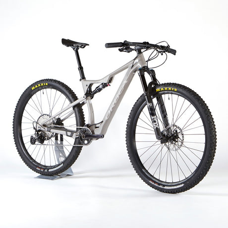 A dual-suspension trail mountain bike.