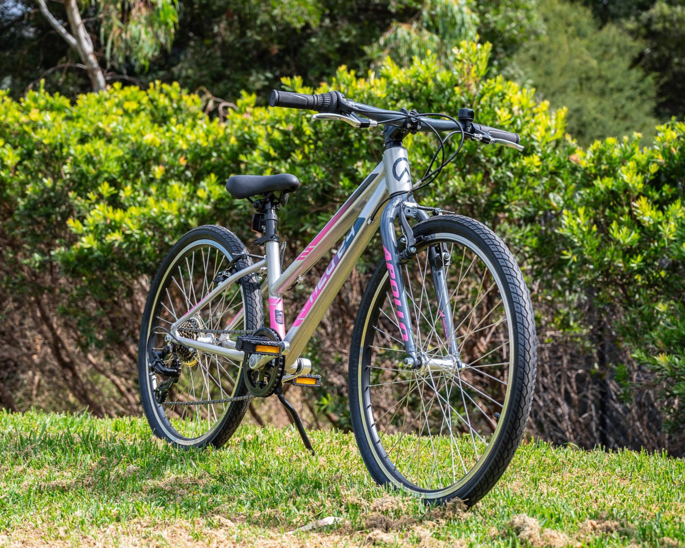 24" Apollo Neo+ 7 Speed Girls - Brushed Alloy/Charcoal/Pink Fade is backordered and will ship as soon as it is back in stock.