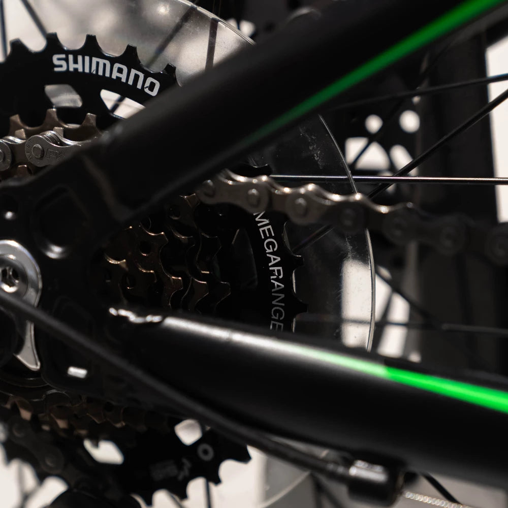 There's also a MegaDrive cog on the back cassette. This allows kids to climb hills easier.