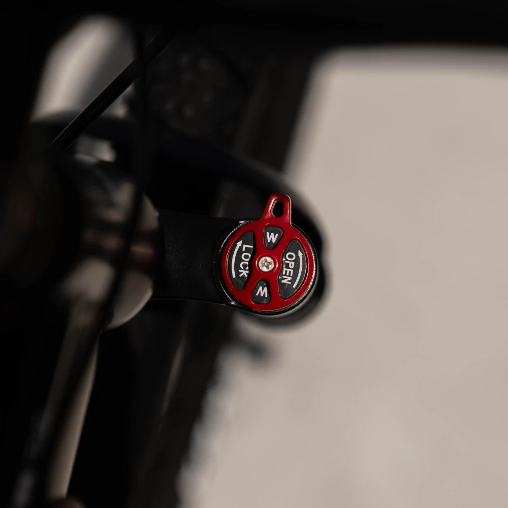 The suspension has a red dial that is a lockout. It makes the suspension soft or hard.