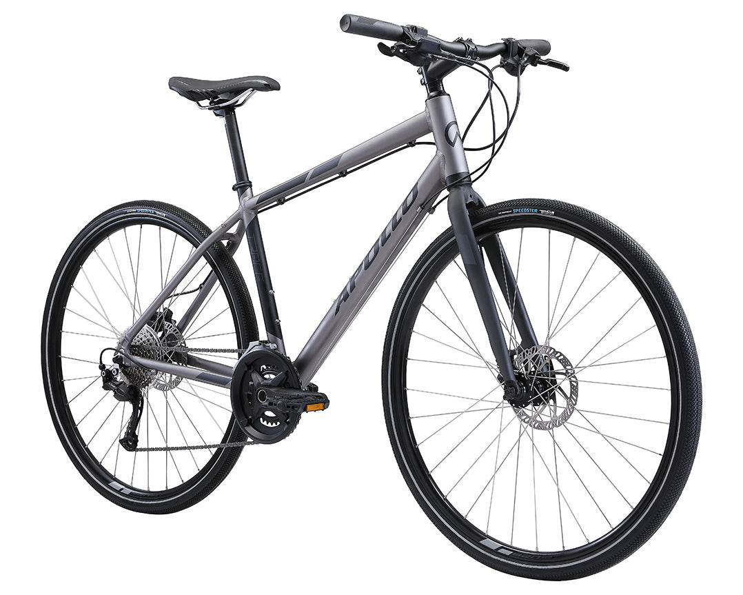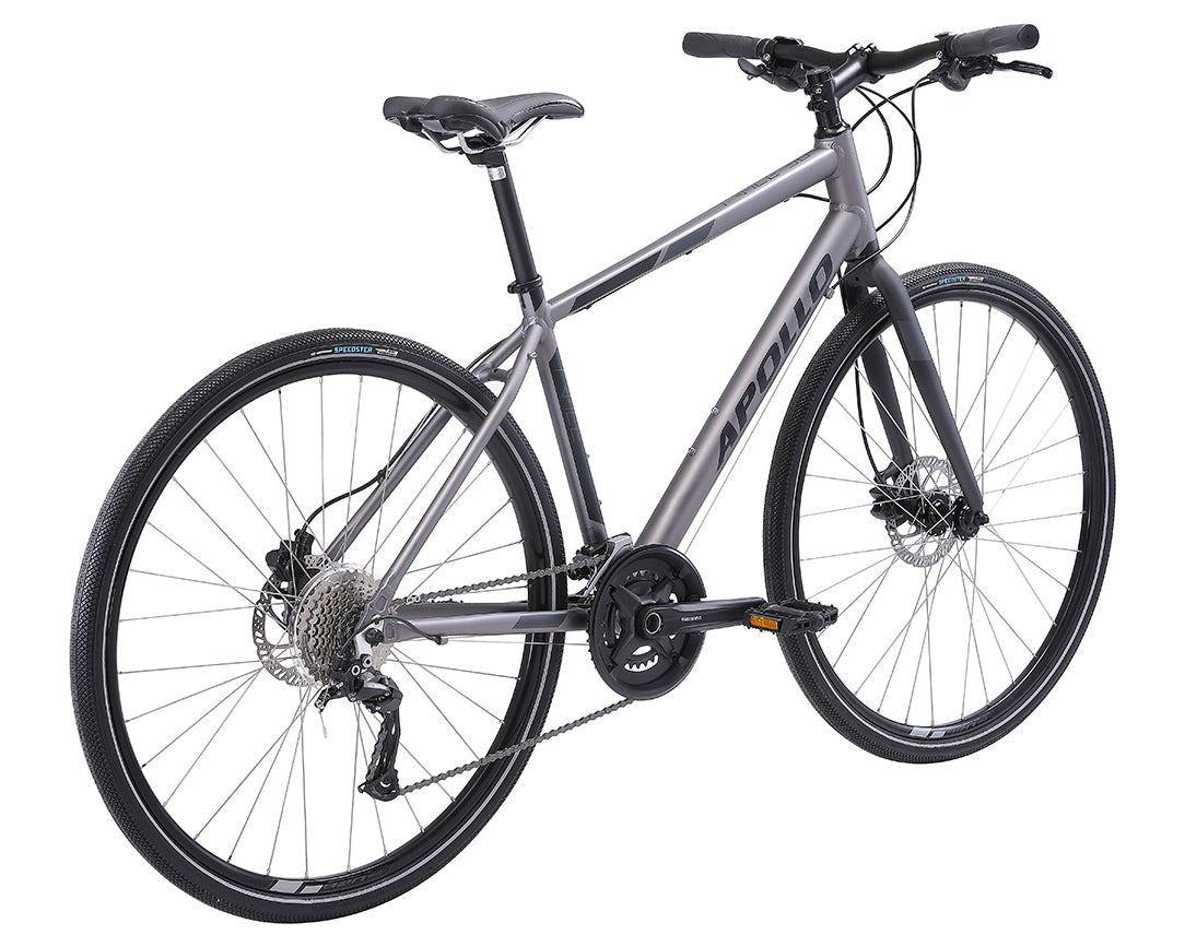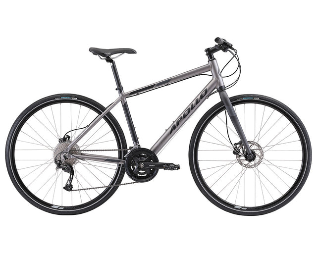 The Apollo Trace 30 is a versatile hybrid bike tailored for urban commuting and recreational rides. Its butted 6061 aluminum frame with smooth welding offers durability and a comfortable upright riding position. Equipped with an alloy 700c disc-specific fork featuring rack and fender mounts, it's ready for various accessories.