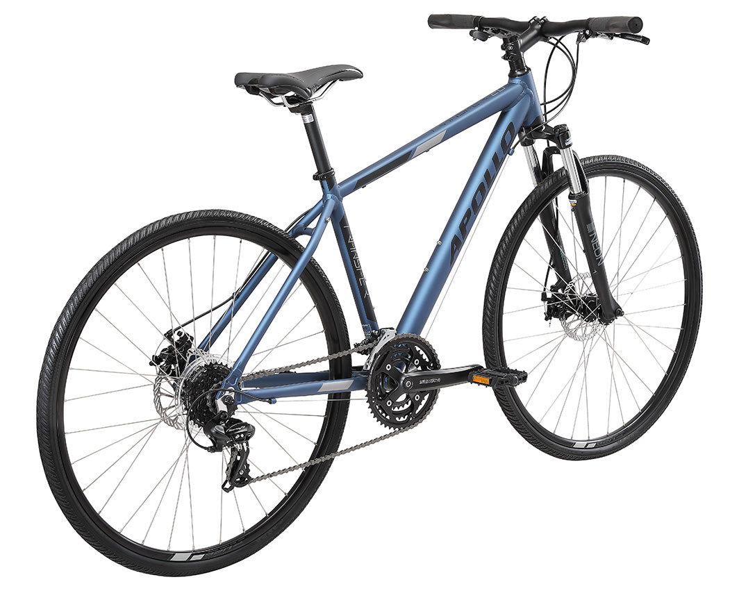The Apollo Transfer 20 is a versatile hybrid bike designed for commuting and recreational rides. Its lightweight 6061 butted aluminum frame offers durability and a comfortable upright riding position. Equipped with an RST Neon ML suspension fork providing 60mm of travel and a lockout feature, it adapts well to various terrains.
