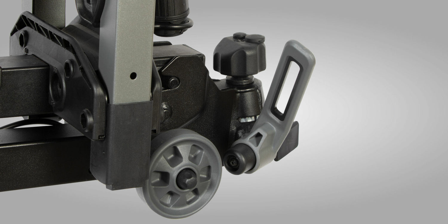 - A built-in transport wheel makes it as easy as possible to get the rack to and from your car. You won’t even need to lift the rack until you put it on the tow bar. Because it folds it’s much easier to maneuver.