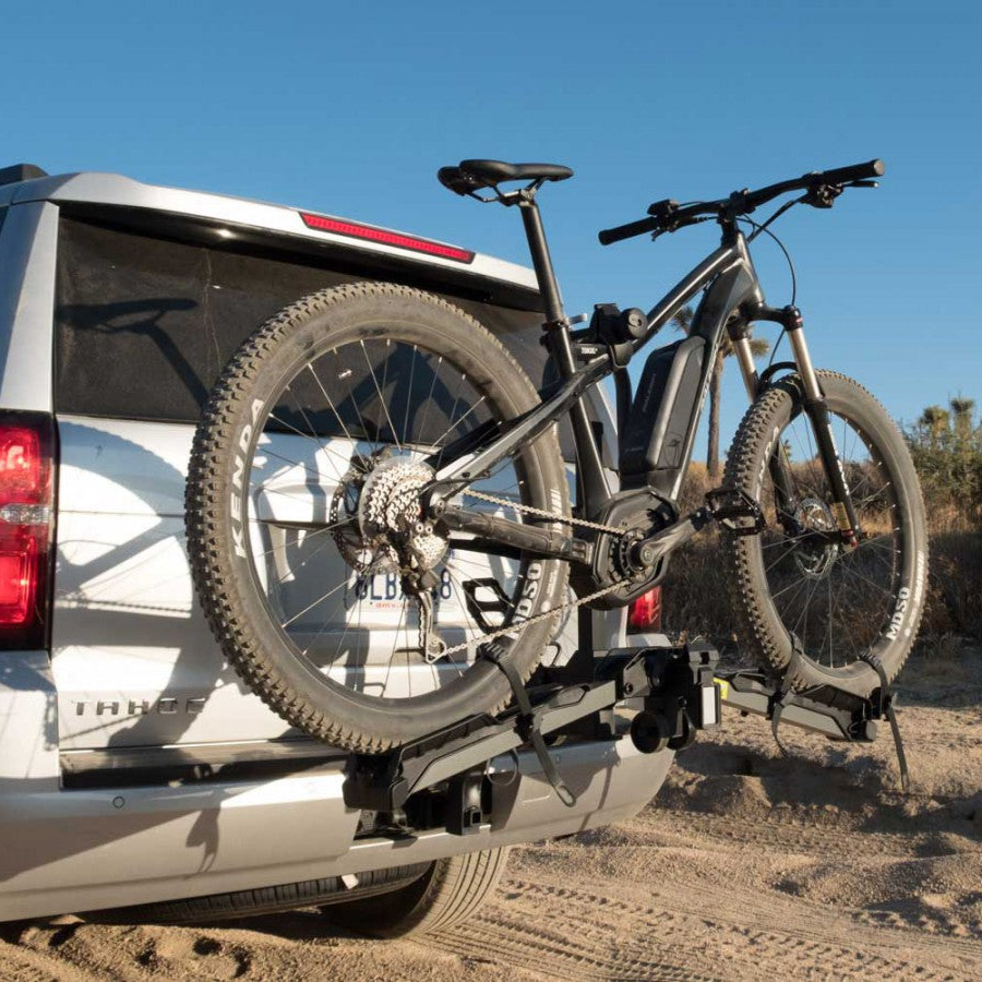 E-Bike compatible. Hitch mount platform rack for 1 bike.