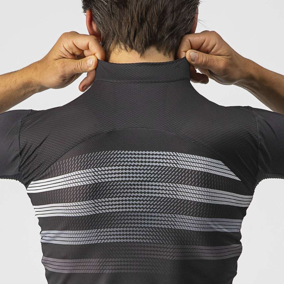 The pockets feature Castelli’s drop-pocket design, which places the pockets lower on the back for easier access. There’s even a fourth zippered pocket for valuables. Your long rides and even your short rides will be faster with less effort because this jersey is also highly aerodynamic, especially through the sleeves and shoulders, which feature the same fabric used on several generations of Castelli’s pro-level race jerseys.