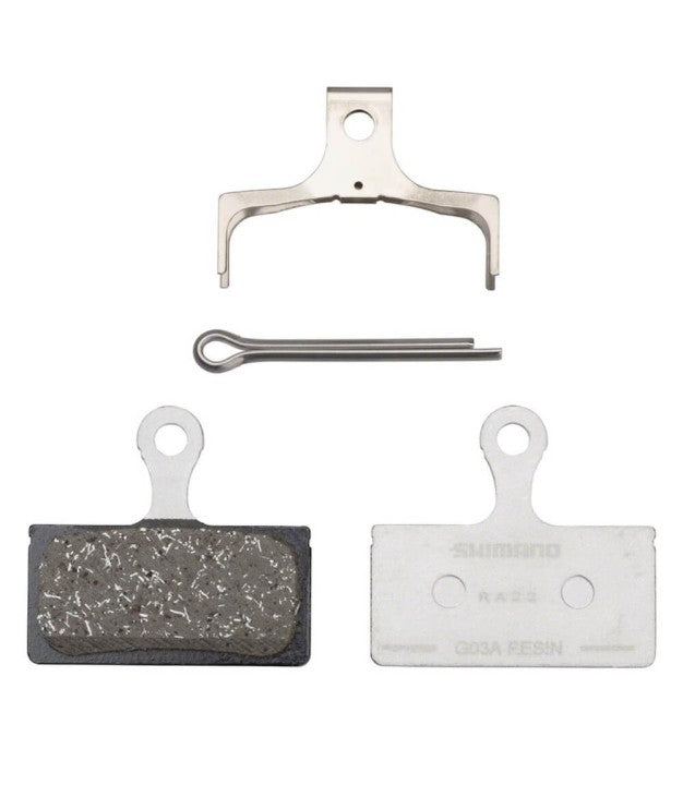 Shimano G03A Resin disc brake pads & spring, suitable for Shimano M9000 brakes.