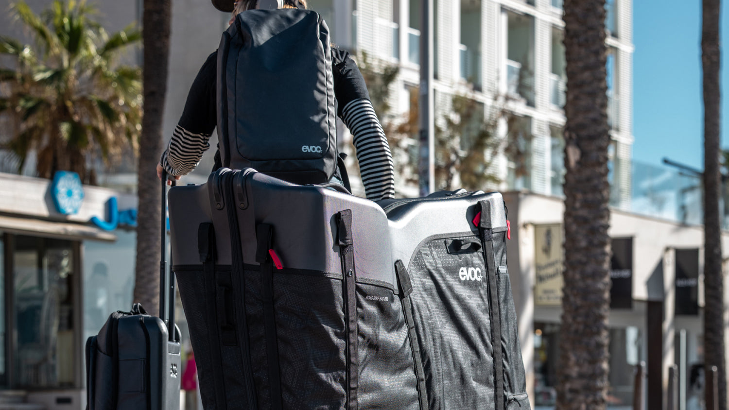 Equipped with easy-rolling skate wheels and the replaceable CLIP-ON WHEEL 3.0 (QWD – Quiet Wheel Drive), the MOUNTAIN BIKE BAG PRO glides effortlessly through airports, train stations, or rough ground. Built to last, they make every trip smoother and every turn quieter.