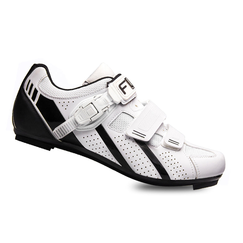 Lighter, stiffer, more comfortable. The FLR F-15 III shoe is designed with a three point closure system: a ratchet buckle to ensure a precise fit & secure closure and two offset velcro straps. The mid-foot strap conforms to your foot’s shape for a ‘second skin’ feel and the additional strap aids in distributing pressure without pinching. The buckle and strap can be replaced. Featuring the R250 outsole designed with a full-length arch support that won’t pack out over time; a well padded tongue that evenly distributes pressure; 2 layer composite footbed that absorbs road shock and nylon mesh ports for ventilation that all come together to make the F-15 III a supremely comfortable performance road shoe.