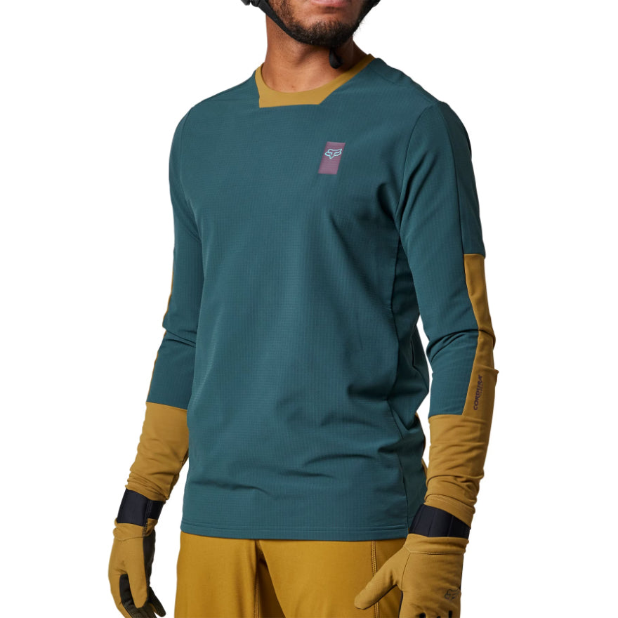 Lightly insulated, long sleeve mountain bike jersey. The Defend Thermal Jersey is perfect for those cold starts on the trail where a normal jersey just won’t cut it. Lightly insulated, the Defend Thermal long sleeve jersey is designed using a stretch grid that offers channeled insulation throughout the garment. Lightweight and moisture-wicking, it features DWR-coated nylon elbows and a drop tail for increased abrasion resistance. Built to perform, the relaxed fit of the jersey leaves plenty of room for elbow guards should you prefer extra protection as you rip.