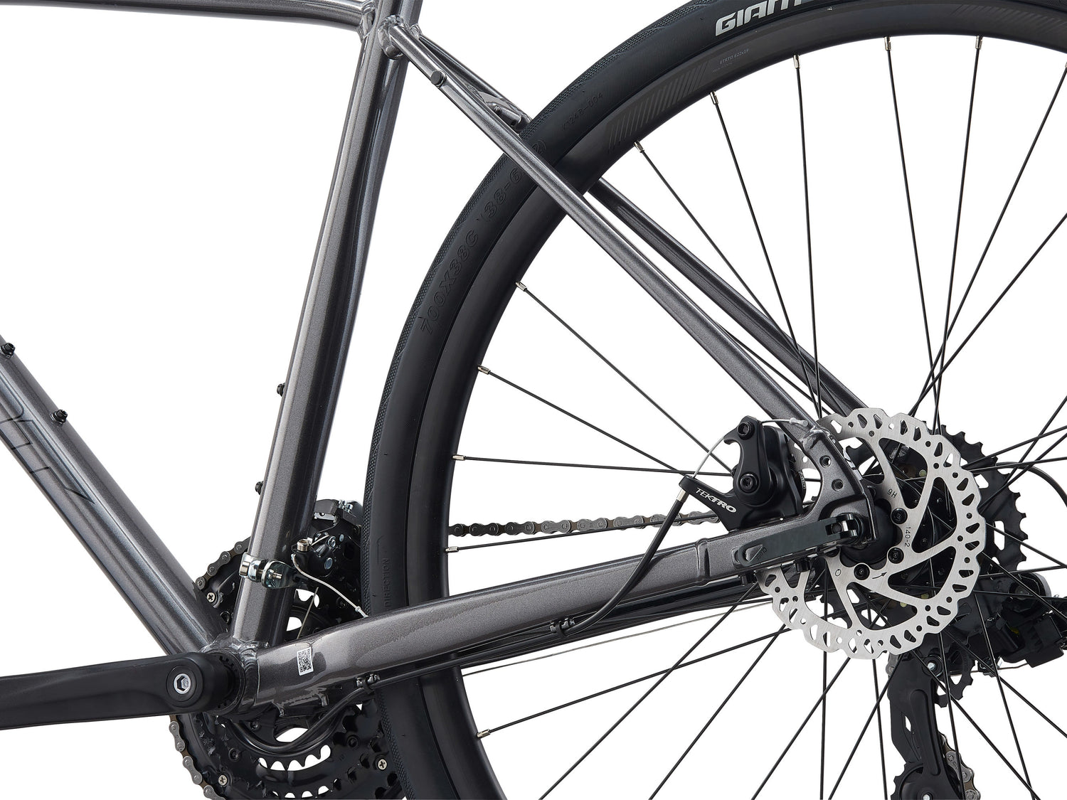 Both are great for smoothing out rough roads, absorbing shocks and vibrations, and giving you a smoother, more comfortable ride. The disc brakes deliver powerful braking performance in dry or wet conditions, and the 700c wheels with Giant EasyRide Tubeless* tyres (on select models) keep you rolling with speed, efficiency and a reduced risk of flats.