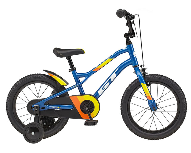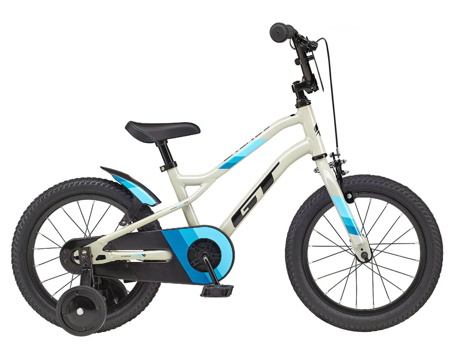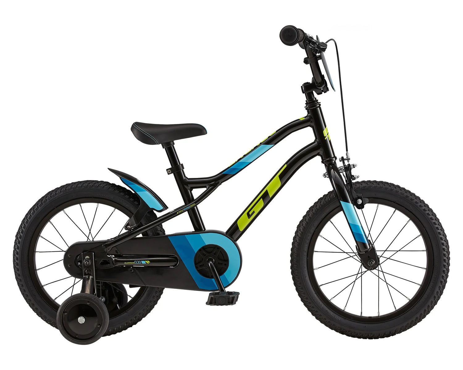 This 16-inch bike features an alloy frame, training wheels and GT's LegitFit system. A design approach that makes riding easier for kids.