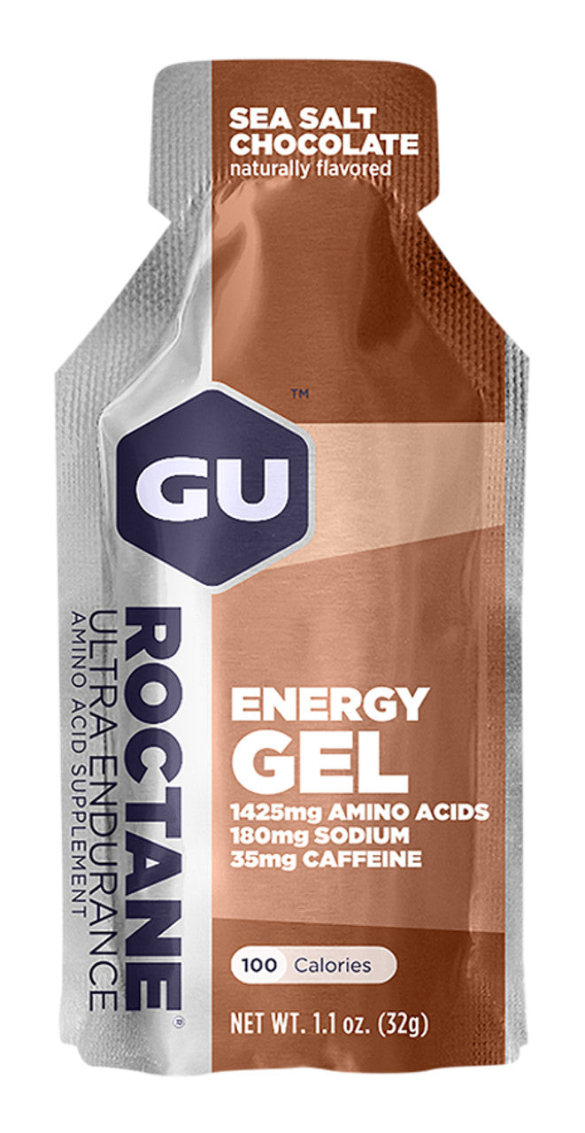 Created for demanding training and competition, GU Roctane Energy Gel stands out from original GU Energy Gel with more sodium, an electrolyte that aids in hydration, and even more branched-chain amino acids (leucine, valine, and isoleucine) that reduce mental fatigue and decrease muscle damage than our original GU Energy Gel.