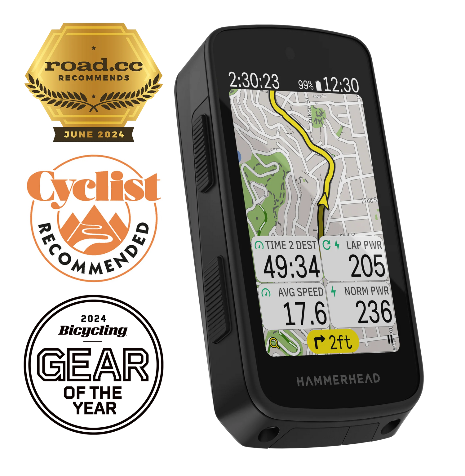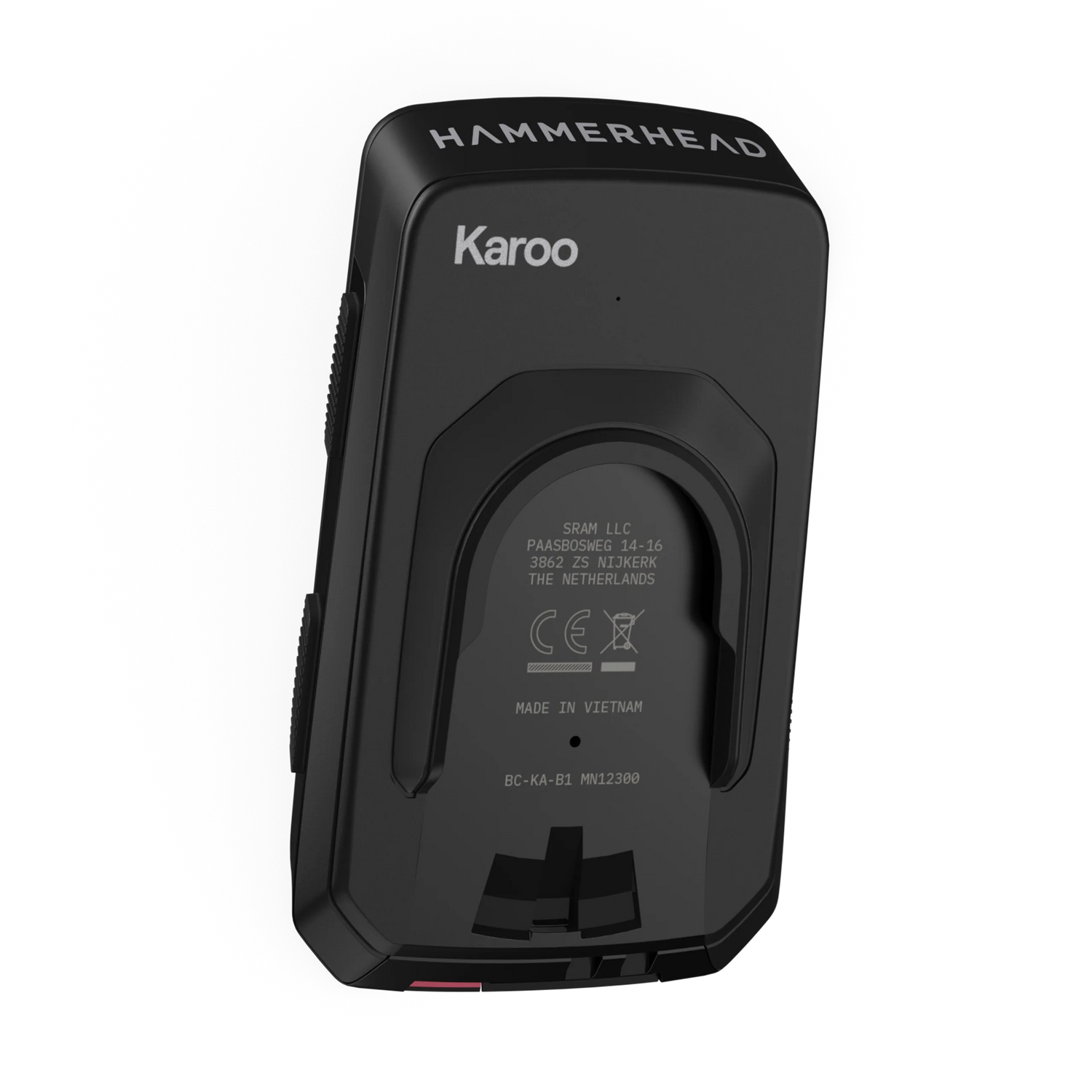 The Hammerhead Karoo cycling computer represents the pinnacle of innovation, design, and performance. The stunning screen, premium materials, and all-day battery life combine to make Karoo a cycling computer without compromise. Easy to use in every condition thanks to thoughtful hardware and software design, Karoo allows you to focus on the road - and the ride - instead of your equipment. Featuring comprehensive structured workout support, industry best navigation, and a Companion App and Dashboard that let you manage your Karoo without removing it from the handlebars; Karoo helps you hit your training goals, explore new routes, and enjoy every ride. The pièce de resistance is Karoo’s unparalleled control of your bike’s connected components, from SRAM AXS products to E-Bikes to ANT+ lights