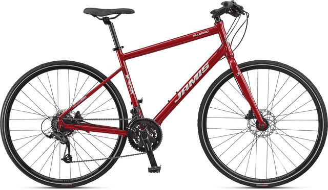 The Jamis Allegro A2 is a well-rounded fitness bike designed for urban commuting and recreational riding. It features a lightweight aluminum frame, 700c wheels, and Tektro hydraulic disc brakes, making it a reliable choice for riders who want a balance of speed, comfort, and control.