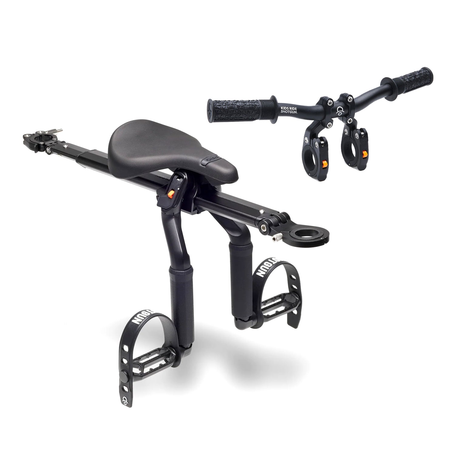 The Kids Ride Shotgun Pro combo is the ultimate setup for your mountain bike kid, including the bike seat, mini handlebars and frame adapter bar.
