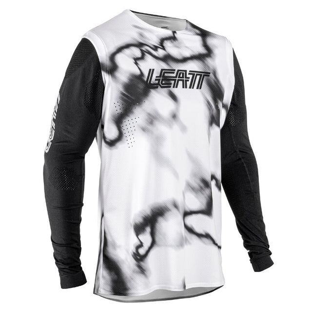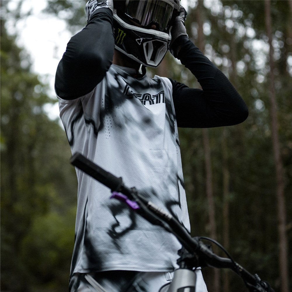 The Gravity 8.0 Jersey is Leatt’s most advanced race jersey—engineered with Pivot Factory Racing to meet the demands of World Cup downhill competition. Its unique construction pairs a regular-fit torso with compression-fit sleeves in a seamless 3D-knit design, delivering a second-skin feel that supports speed and freedom of movement. The sleeves use CoWeave and Deflextion technology to blend targeted ventilation with reinforced zones—no seams, no excess, just pure race performance. The torso is made from IceYarn, a high-tech cooling knit with natural antistatic and bacteriostatic properties to keep you comfortable under pressure. Laser-cut vents boost airflow, and the collarless, welded neckline eliminates bulk. Finished with a hidden goggle wipe and bluesign® approved materials, this is the jersey of choice when podiums are on the line.