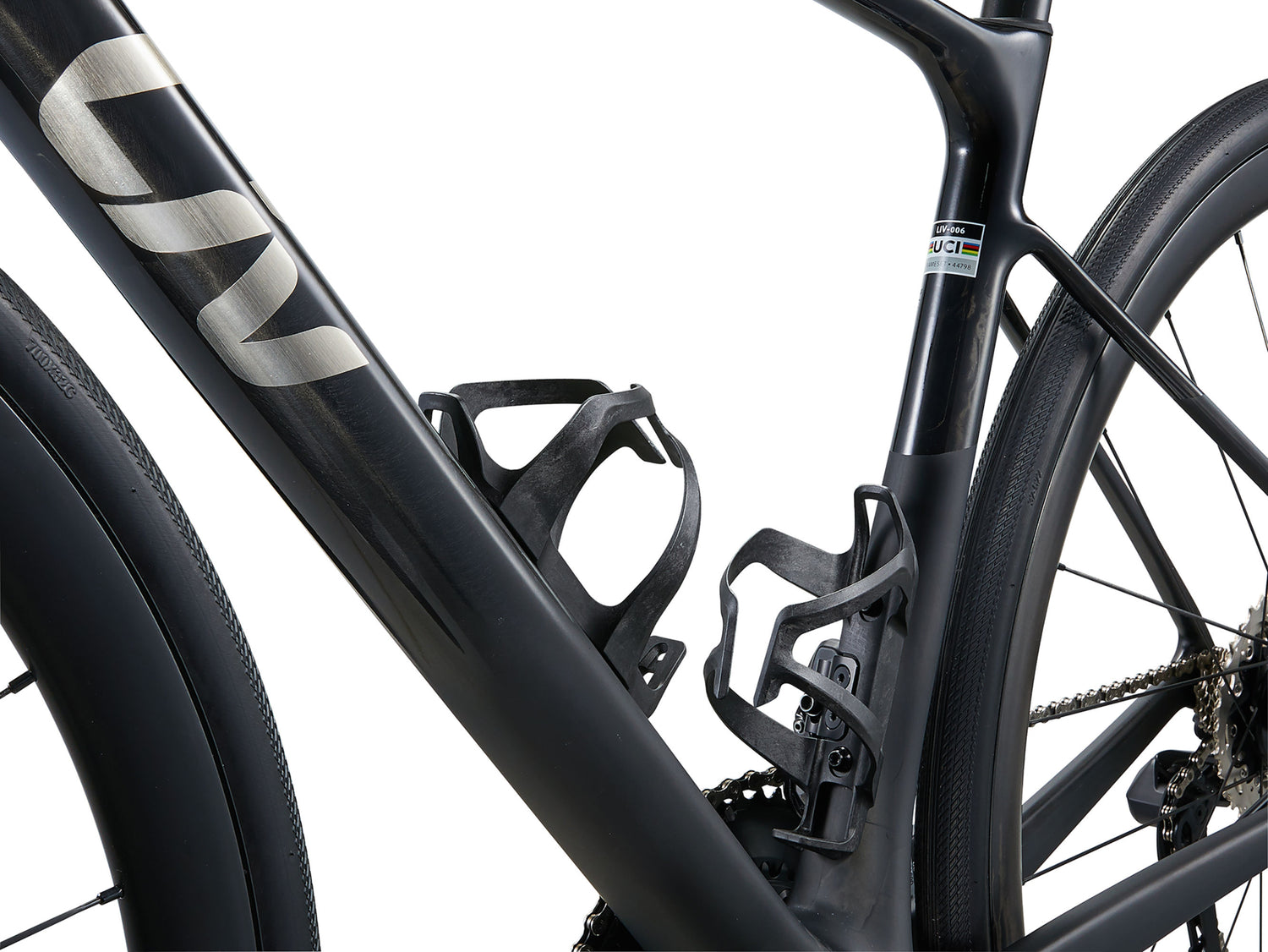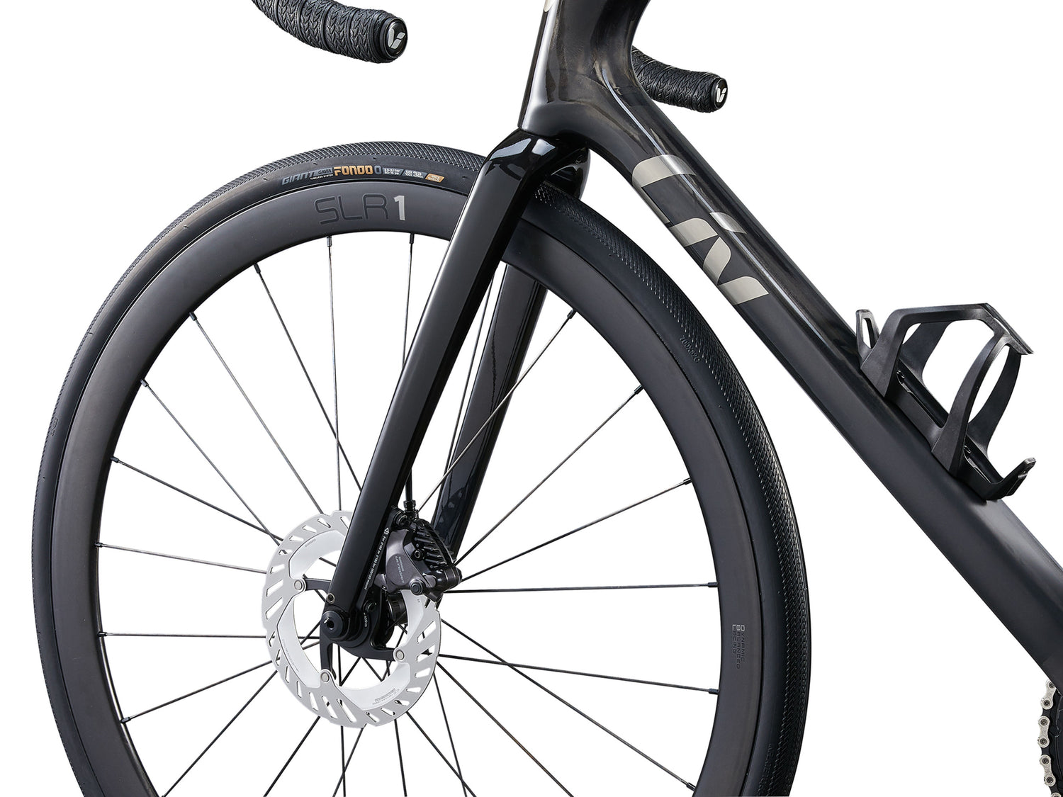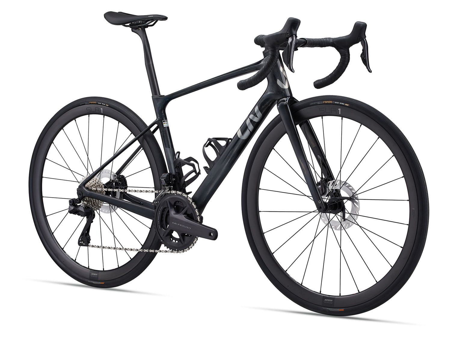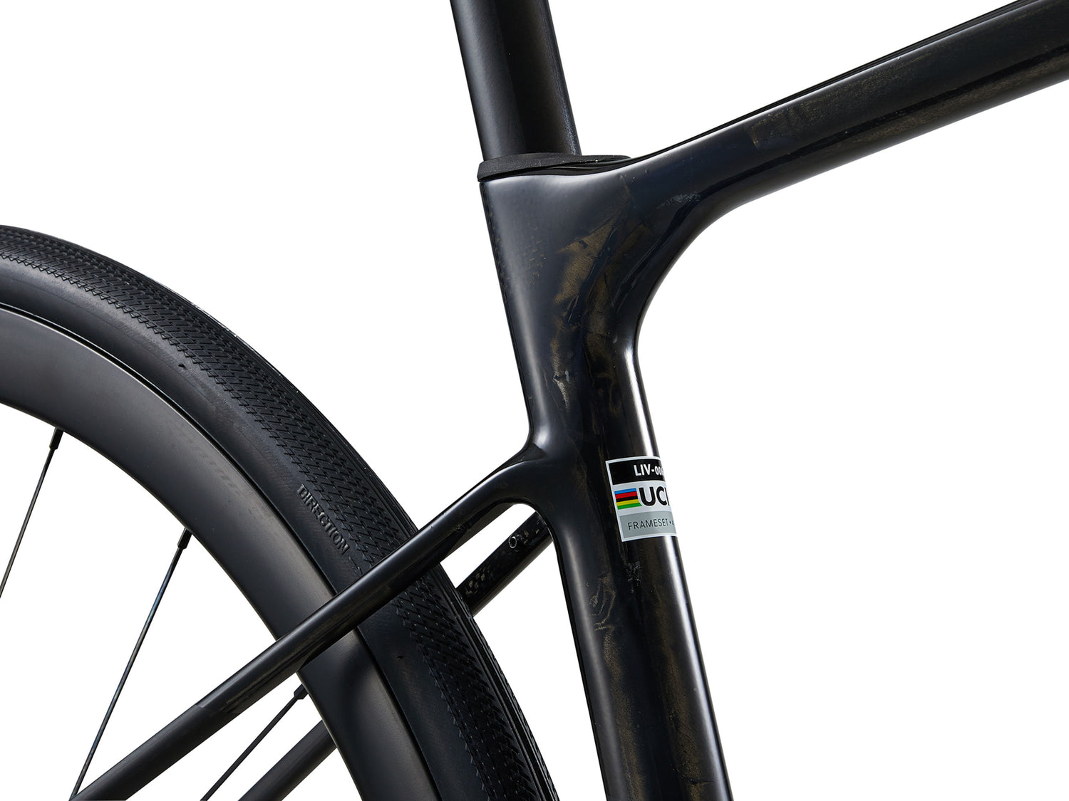 The Liv Contact D-Fuse handlebar features an ergonomic shape and 8-degree flare drop, for total control on those all-day rides. Wide, hookless carbon rims are designed for high-volume tubeless tyres (up to 38mm) and a 36mm rim depth, providing predictable handling and stability from asphalt to pavé.