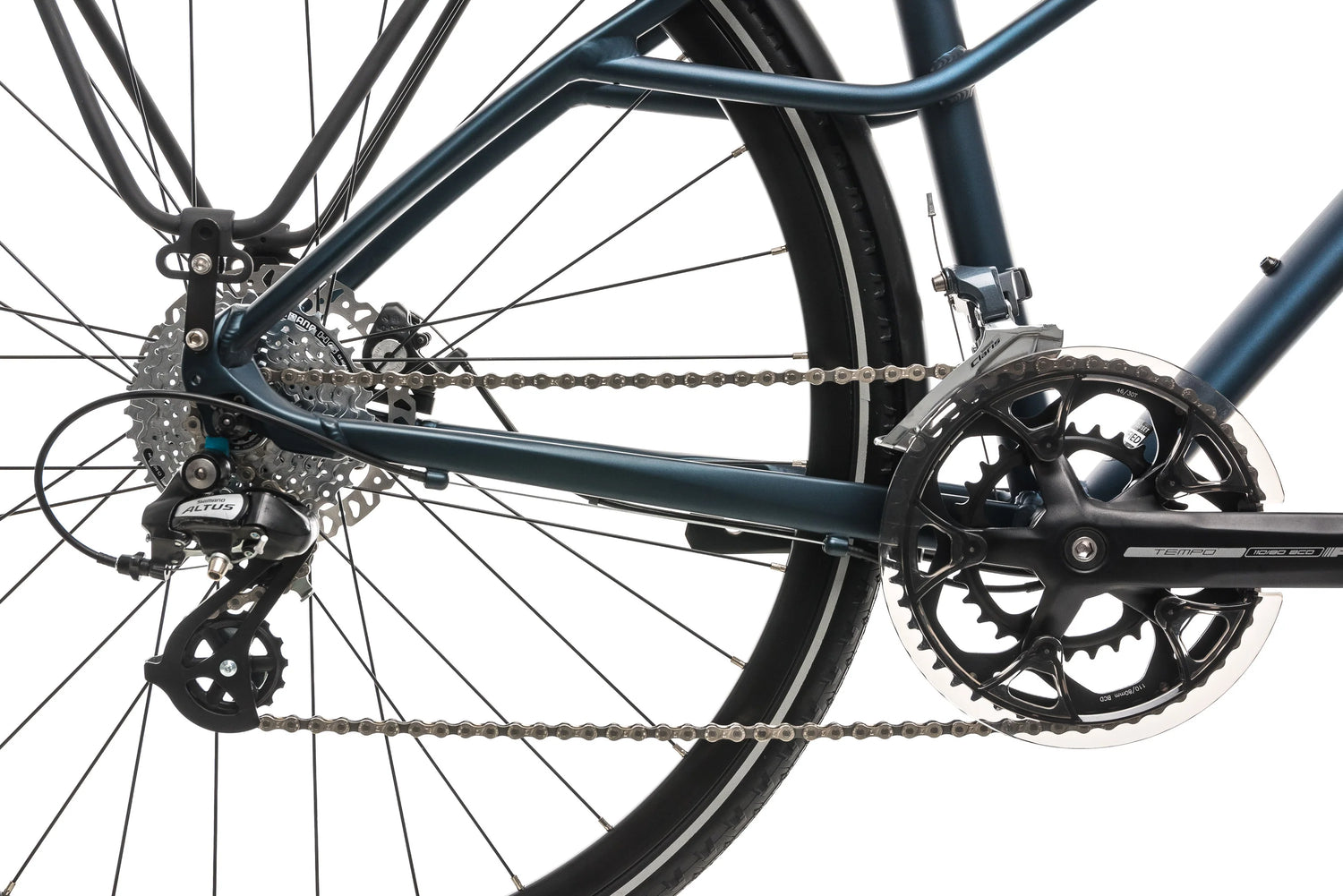 - Shimano Claris 2x8-speed drivetrain for smooth shifting