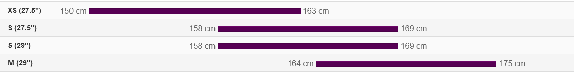 | Frame size | Rider height |