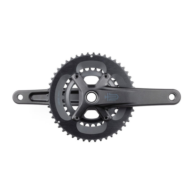 The Sword 2x crankset is designed for climbing. The two chainrings have a 17t gap between them, so you get a lower gear range than competitive cranks while still having high gears to push the pace downhill. And it’s designed to be as compatible and easy to own as possible: the 24mm spindle is compatible with a ton of aftermarket bottom brackets, and it’s easy to convert from a 2x to a 1x crank by installing a single chain-retaining ring in the outer position.