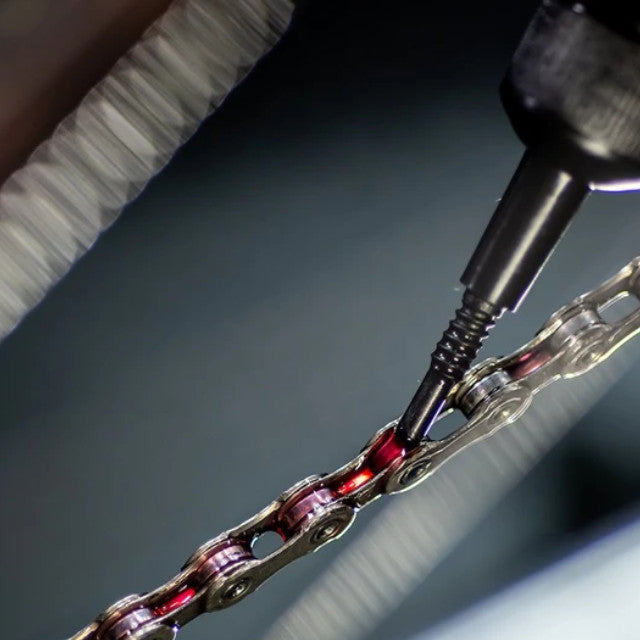 3. Apply a moderate amount of C3 Ceramic Wet Chain lube to the inside chain link while spinning pedals in a reverse motion