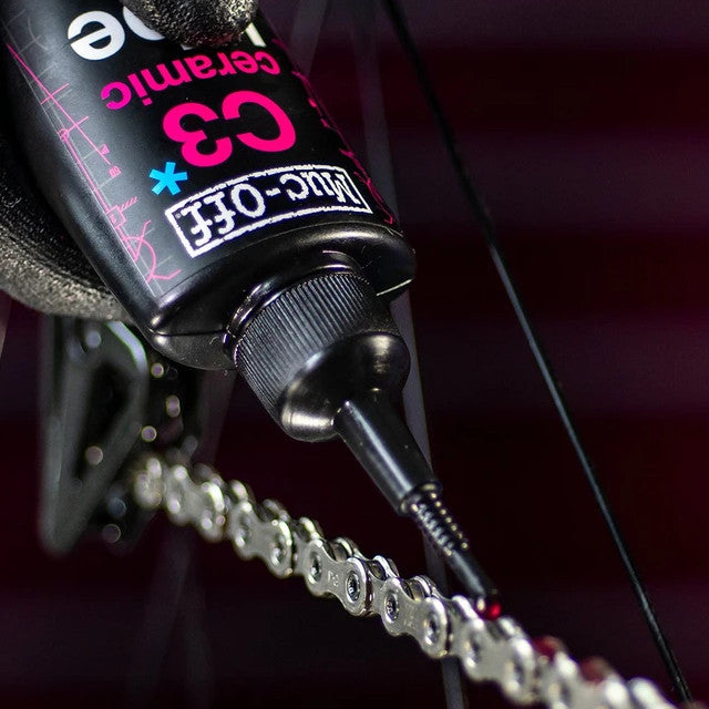 The secret to the C3 Ceramic Wet Chain Lube is its unique ceramic coating that provides incredible durability and long distance performance on all bicycle chains. The innovative formulation in our chain oil also uses Boron Nitride to ensure ultra low friction for ultimate drive chain efficiency, high performance and durability. The waterproof qualities of Muc-Off C3 Ceramic Wet Chain Lube also means that your drive chain will excel in the harshest of riding conditions.