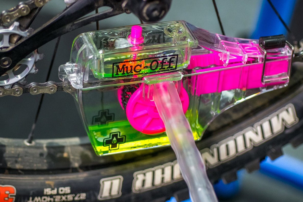 The abrasive cleaning teeth and rotating brush wheels which have 120 contact points cover all areas of the individual chain link for a deep and thorough clean. Finally the excess dirty fluid drops into a second lower reservoir so it’s kept away from the clean chain. No more recycled grime all over the chain! Muc-Off Drivetrain Cleaner is fully biodegradable and is safe to be disposed of down the drain if you previously used one of our bio chain lubes!