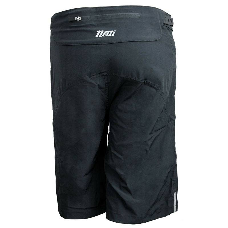 Netti’s Shy Short for men is engineered for a comfortable ride, with a quick-dry lightweight outer shell short, removable padded liner short with mens-specific chamois, elasticized section in the waistband for a snug fit, 3 zippered pockets and 10.5” inseam