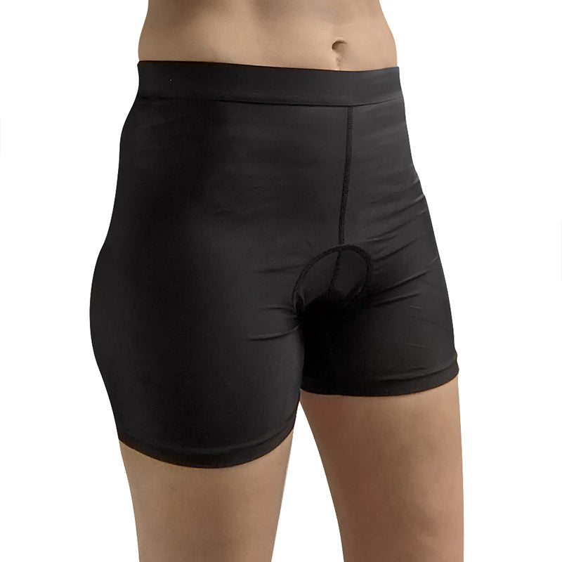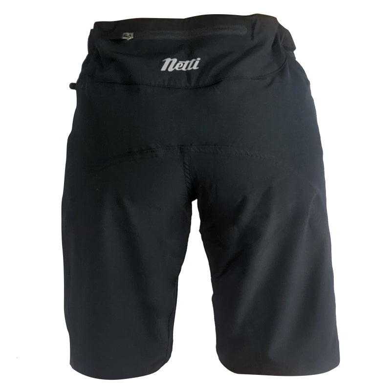 Netti’s Shy Short for women is engineered for a comfortable ride, with a quick-dry lightweight outer shell short, removable padded liner short with womens-specific chamois, elasticized section in the waistband for a snug fit, zippered pockets and modest 13.5” inseam.