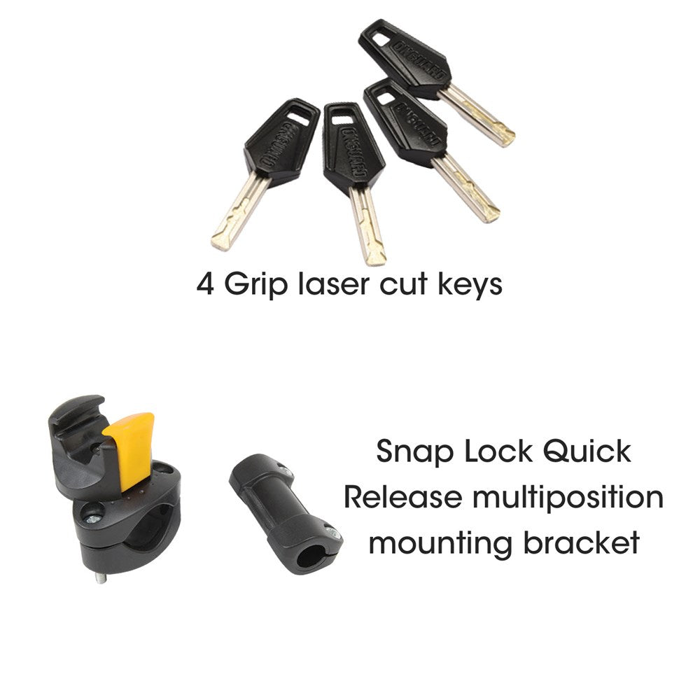 - Hardened steel shackle resists cutting, prying and jacking