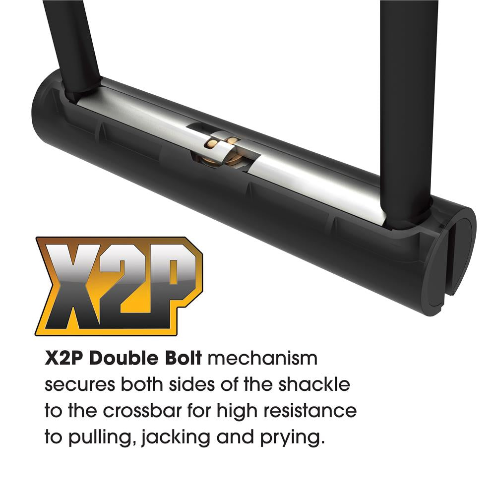 - X2P Double Bolt Locking Mechanism locks shackle on both sides