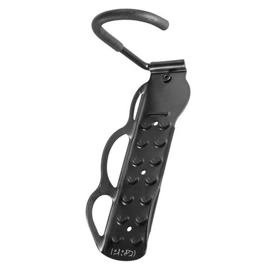 The PRO Bike Rack allows bicycles, with any wheel size, to be hung from a wall by their front wheel for convenient storage.