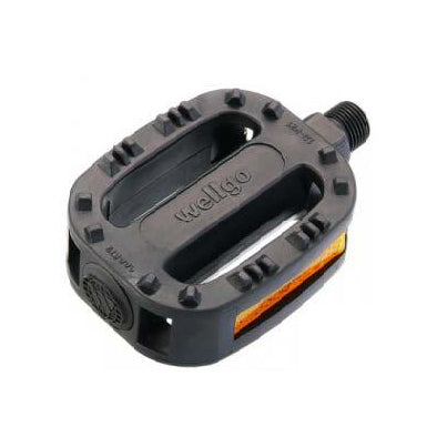 Durable plastic pedals designed specifically for young riders, featuring a compact 1/2 x 1/8 size that fits standard children's bikes. The robust black construction provides reliable grip and performance for developing cyclists learning to pedal with confidence.