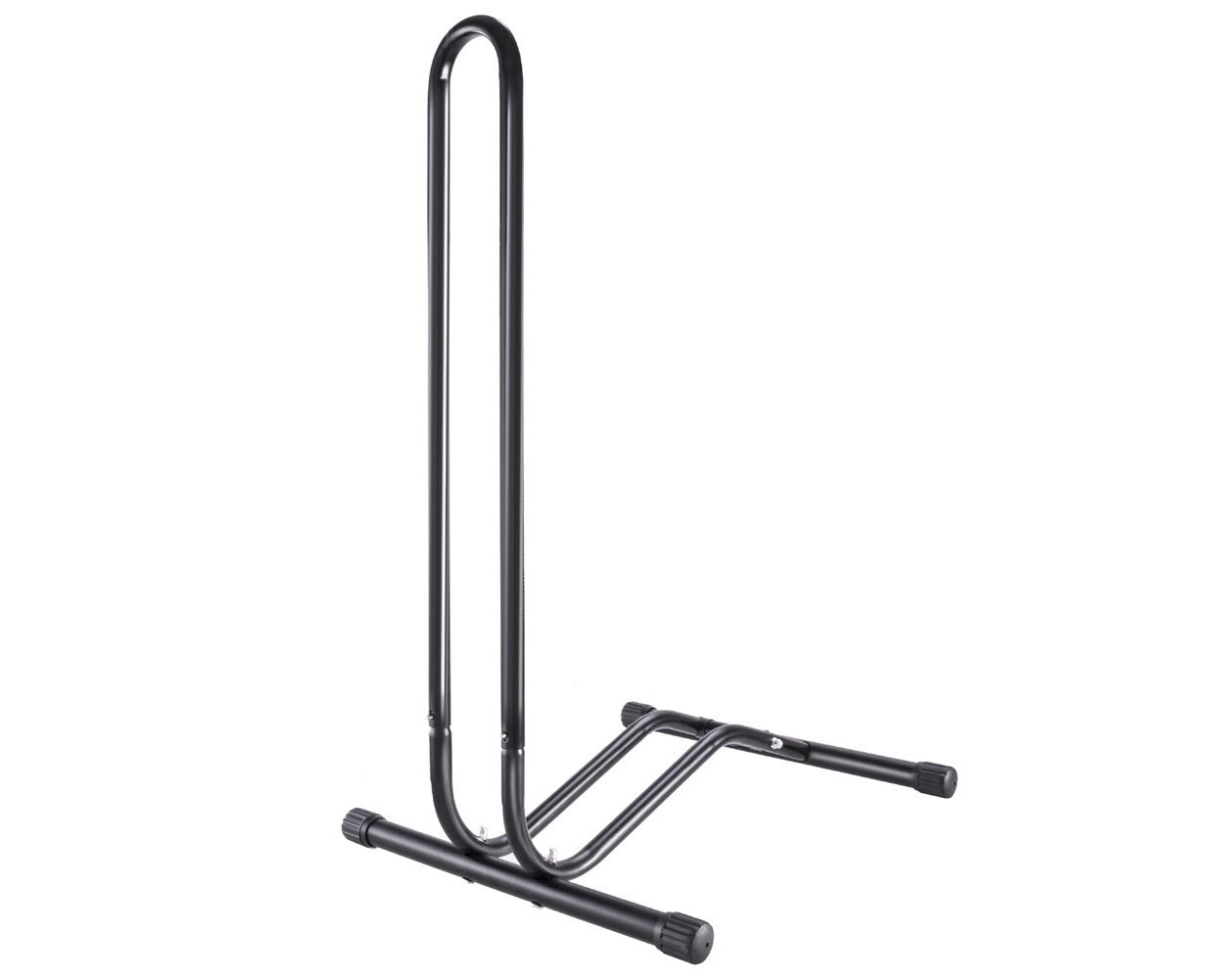 Universal bike storage stand and floor rack for 16"–29" bicycles with tyre widths up to 2.6" (65 mm). Flat pack design with small assembly required. Supports bikes up to 35 kg, making it eBike friendly.