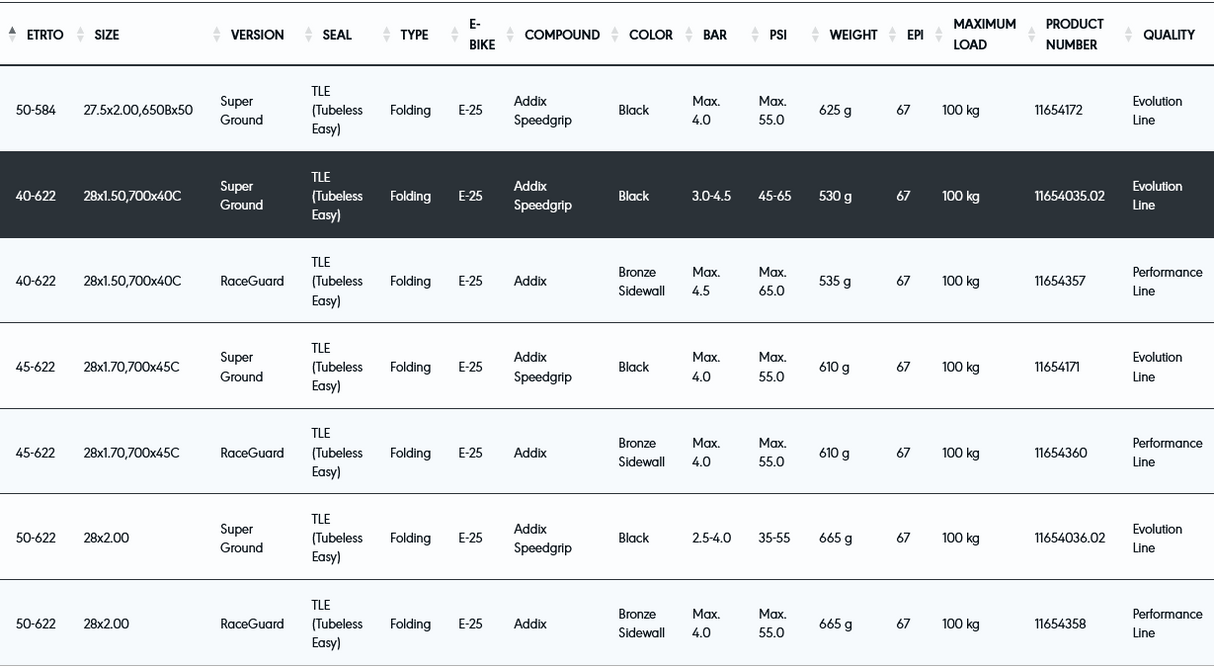 - Tubeless Easy Technology – Allows for lower pressures, improving comfort and control while reducing the risk of punctures.