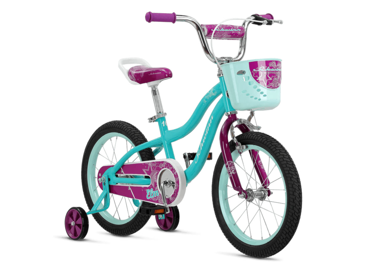 And the Elm 16 also comes with a front basket, removable training wheels, and chainguard. Plus, the seat handle provides an easy way for parents to tow or store the bike when not in use.