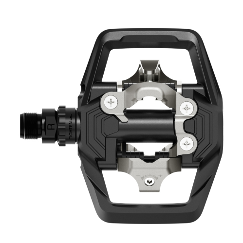 - Wide, dual-sided platform improves pedal-to-shoe stability and power transfer.