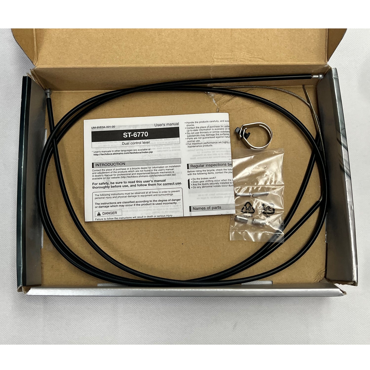 Condition: New, never been used, in damaged box. The original box included both left and right shifter, but right shifter was removed and sold separately. This listing is only for the left shifter. Cables and clamp included in box.