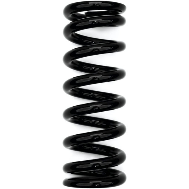The black standard springs for FOX rear shocks are available in many different versions in terms of hardness, travel and overall length. Each of the extremely durable, powder-coated shock springs is marked with its spring rate and the total travel. According to the manufacturer, the basic rule for correct selection is that the stroke of the shock absorber should be less than the travel indicated on the steel spring itself.