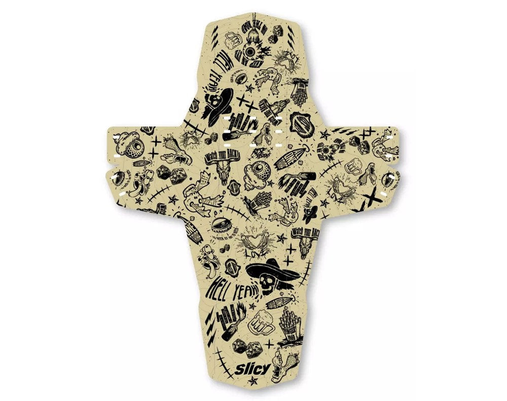 Slicy's trendy enduro/downhill MTB long front mudguard will help you shield against mud and water sprays from the front wheel, while adding vibrant and trendy graphics to your bike. No more all-black, soulless mudguards!