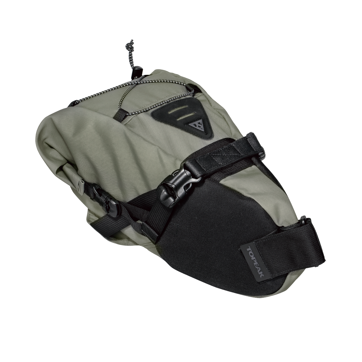 Listen to your inner voice of adventure. Pack up your gear, get on your bike, and ride that epic trail. BackLoader is a large capacity seat bag specially designed for bikepackers providing a streamlined way to carry gear without the need for a rear rack. Constructed of lightweight, highly water resistant and durable materials, it mounts and removes quickly. The upgraded saddle mount system, in conjunction with compression straps, reduces the pendulum effect associated with large rear payloads, providing a comfortable ride for those long miles. An easy access waterproof inner bag is included to keep contents completely dry.