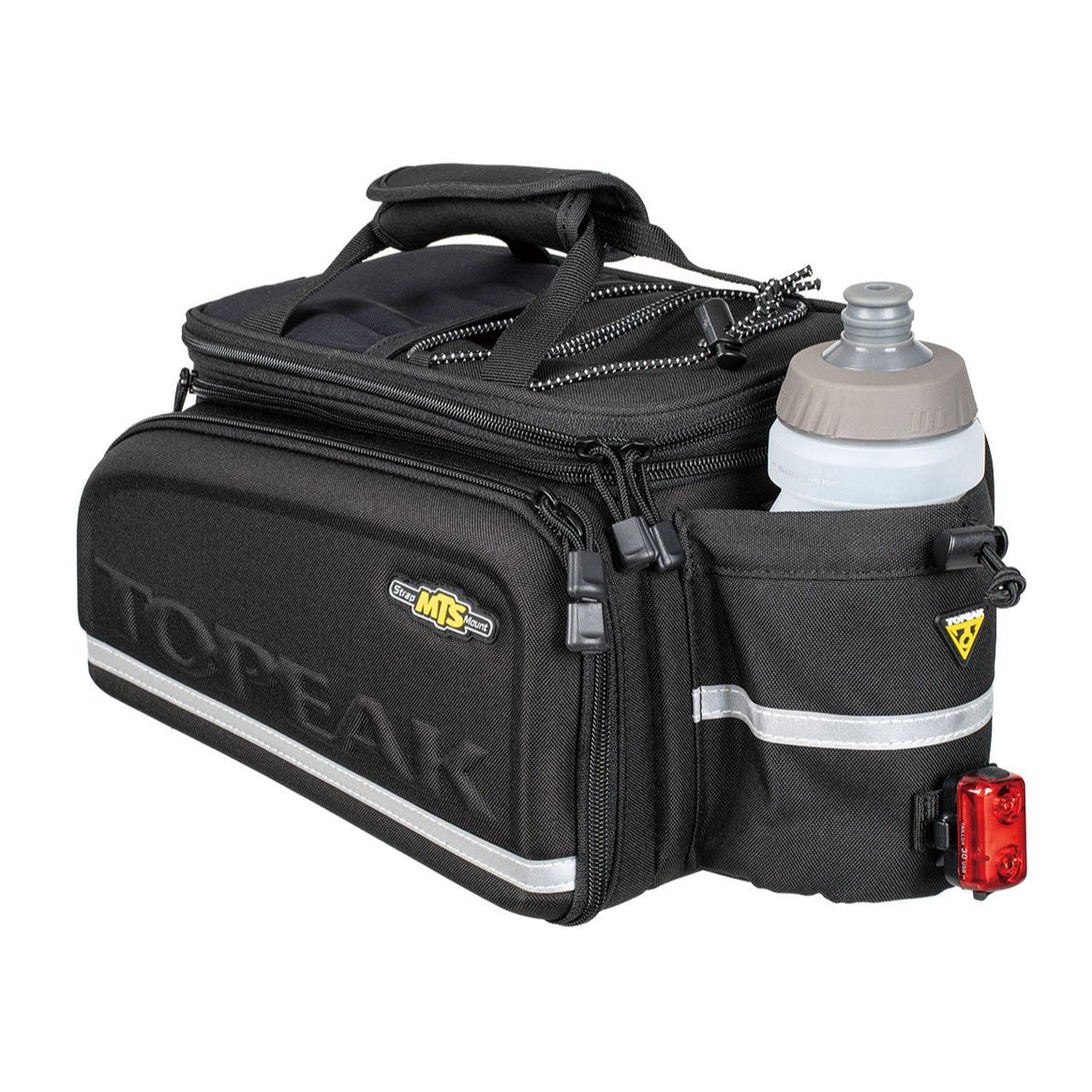 - Universal MTS strap mount fits most pannier racks.