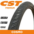 The CST Cosmo is a larger volume tyre with a smooth, inverted grooved tread and micro-textured shoulders. Its fast rolling design is perfect for cruisers, commuters and light off road work on beaches and hard packed surfaces. Features DWEB Defender Cobweb, Webbed anti-puncture layer beneath the tread providing CST's Level 3 protection.