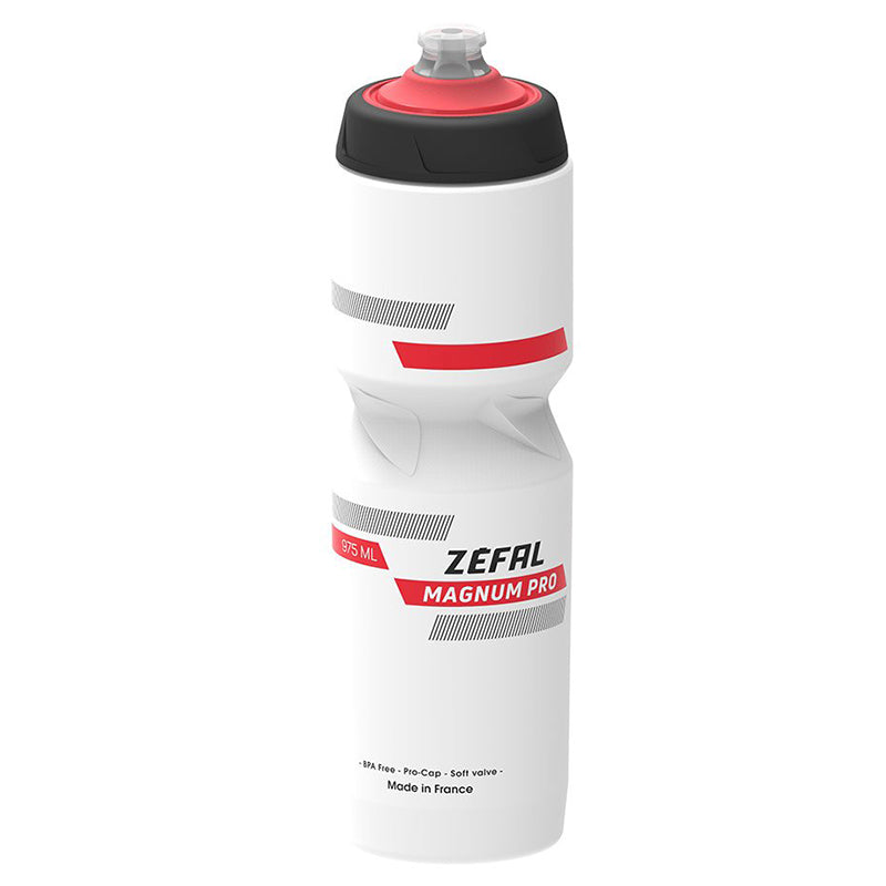 The Magnum bottle’s 975 ml capacity makes it possible to carry large amounts of drink for long rides. The shape of the Magnum is designed to be compatible with most bottle cages (Zéfal or other brands).